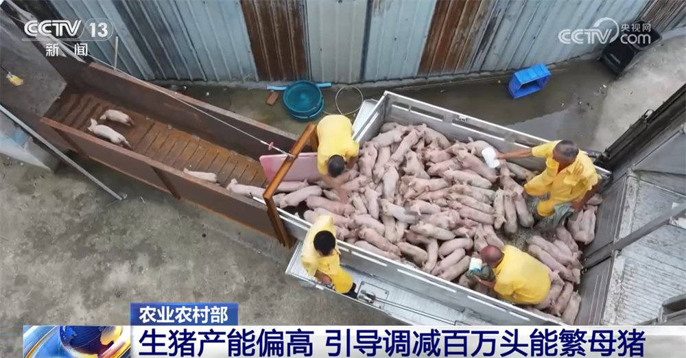 央视网消息:我国猪肉产量和消费量占肉类的六成左右,农业农村部最新调度显示,当前,我国生猪产能阶段性偏高。为防范生产大起大落、价格大涨大跌风险,将实施生猪产能综合调控,引导调减约100万头能繁母猪。
